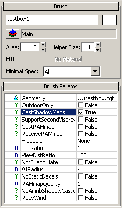 The “Reload” button in the brush parameters can be used for reloading the CGF file. This way you can make changes to it in MAX, export it, and quickly see the effects in the editor.