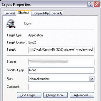 The following you will find an alternative method of loading a mod in Crysis if you do not want to use the Mod Loader that is embedded ingame. To launch Crysis directly with having a mod loaded, you need to run the Crysis.exe with a command line parameter.