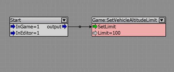 In this example the height limit for flying vehicles is set to 100m using the Game:SetVehicleAltitudeLimit node.